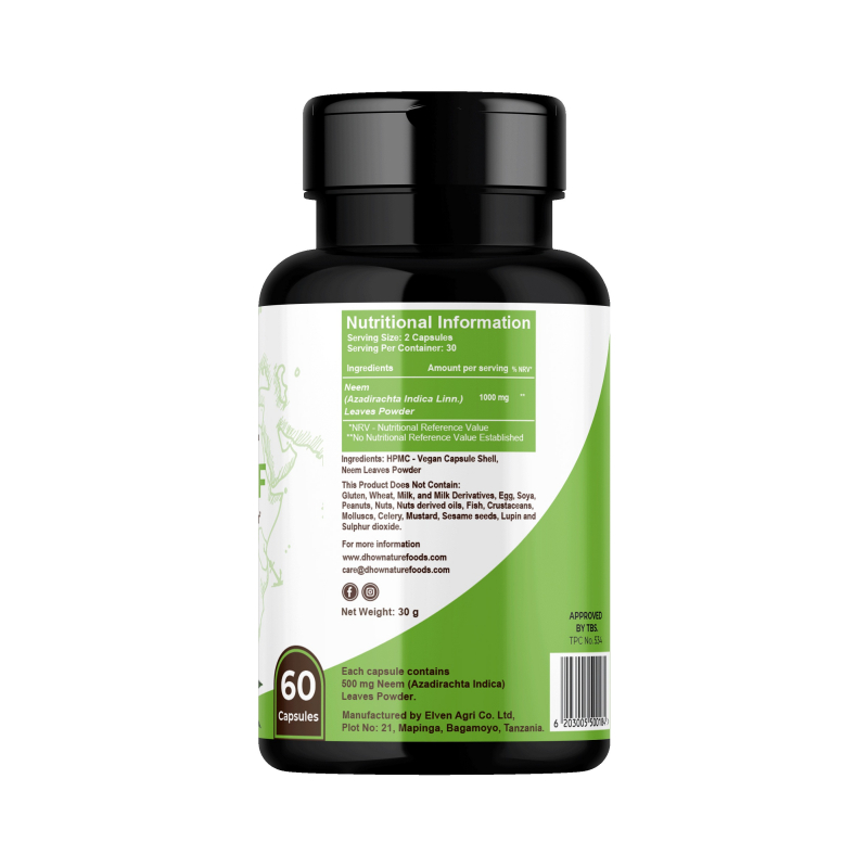 Use our Neem Capsules as part of a healthy lifestyle to improve wellness. It is not a replacement for a varied diet. These capsules are not intended to treat, cure or prevent any disease. You should consult your health care professional for individual guidance for specific health problems.