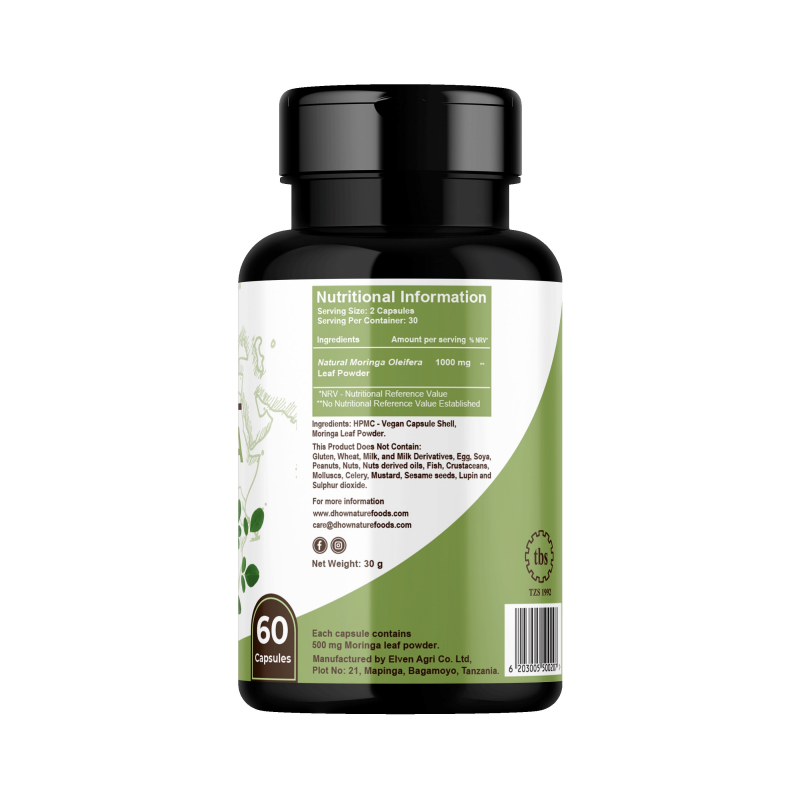 Use our Moringa Capsules as part of a healthy lifestyle to improve wellness. It is not a replacement for a varied diet. These capsules are not intended to treat, cure or prevent any disease. You should consult your health care professional for individual guidance for specific health problems.