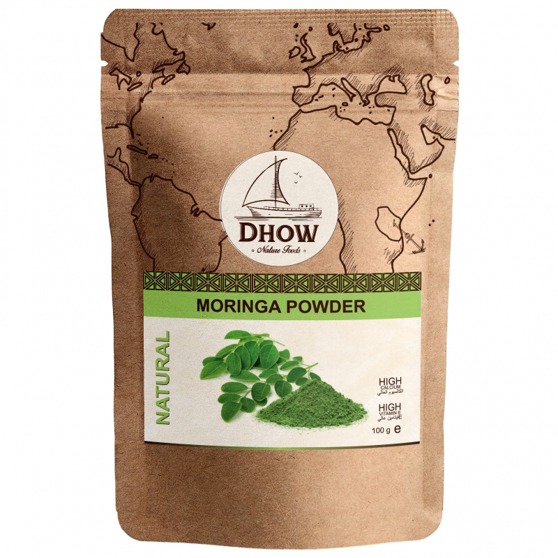 Buy organic raw moringa Oleifera Powder from Dhow Nature Foods (Tanzania) that are rich source of vitamins, minerals, and amino acids.